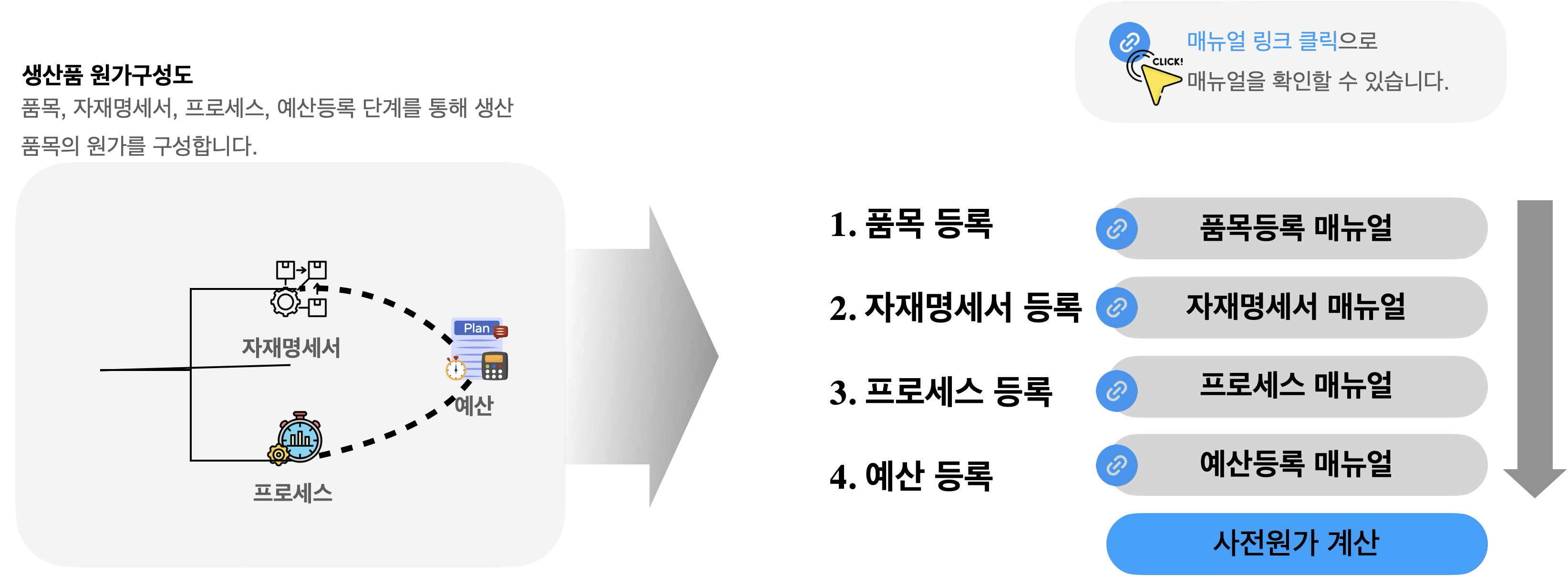 또는, 상단 메뉴 > 사전원가를 클릭합니다.