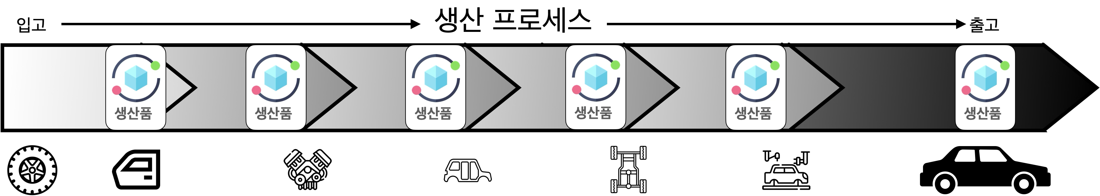 생산에 적용된 프로세스와 작업, 자원을 표시합니다.