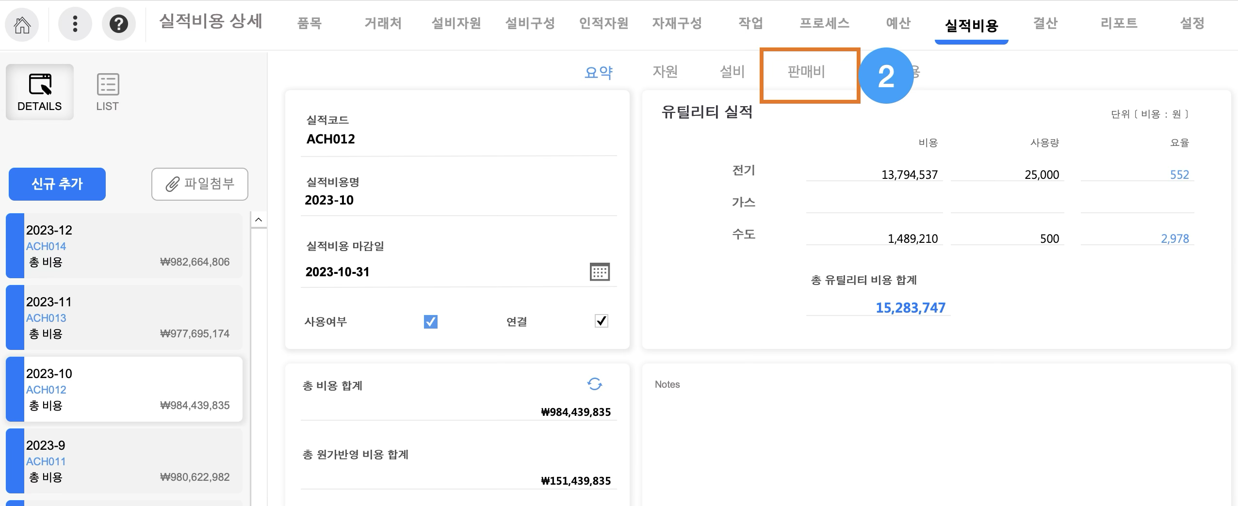 홈화면 > 실적비용으로 이동합니다.