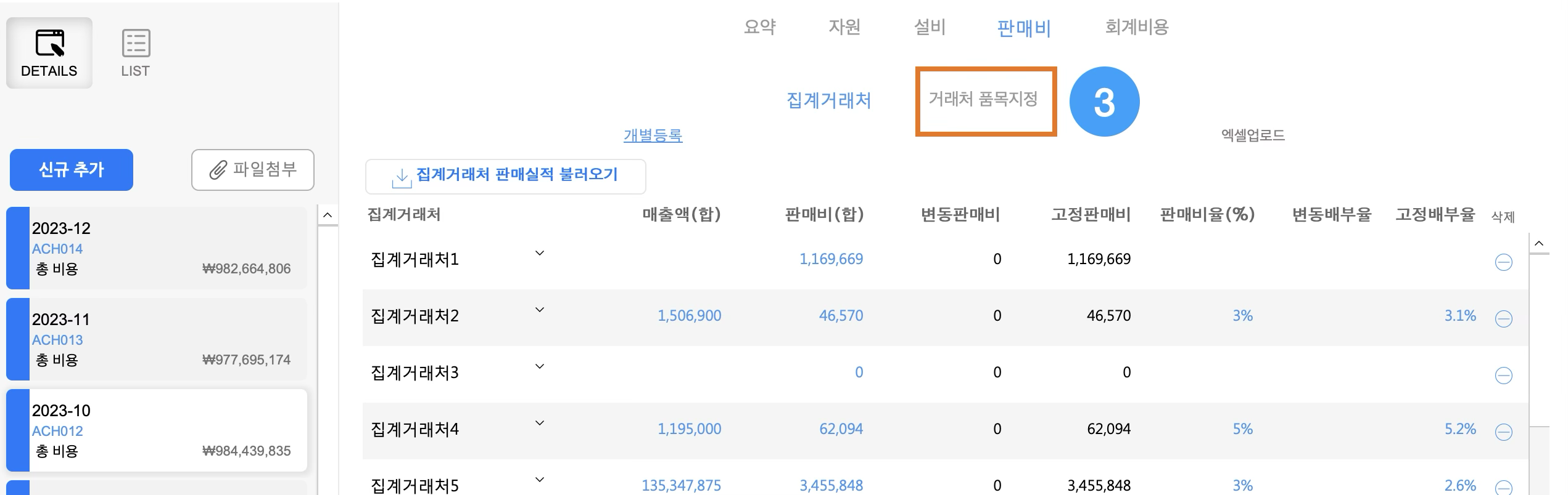 '판매비'버튼을 클릭합니다.