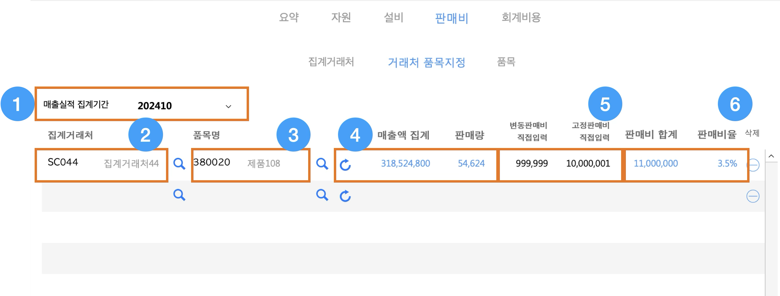판매비를 등록할 매출실적 기간을 지정합니다.