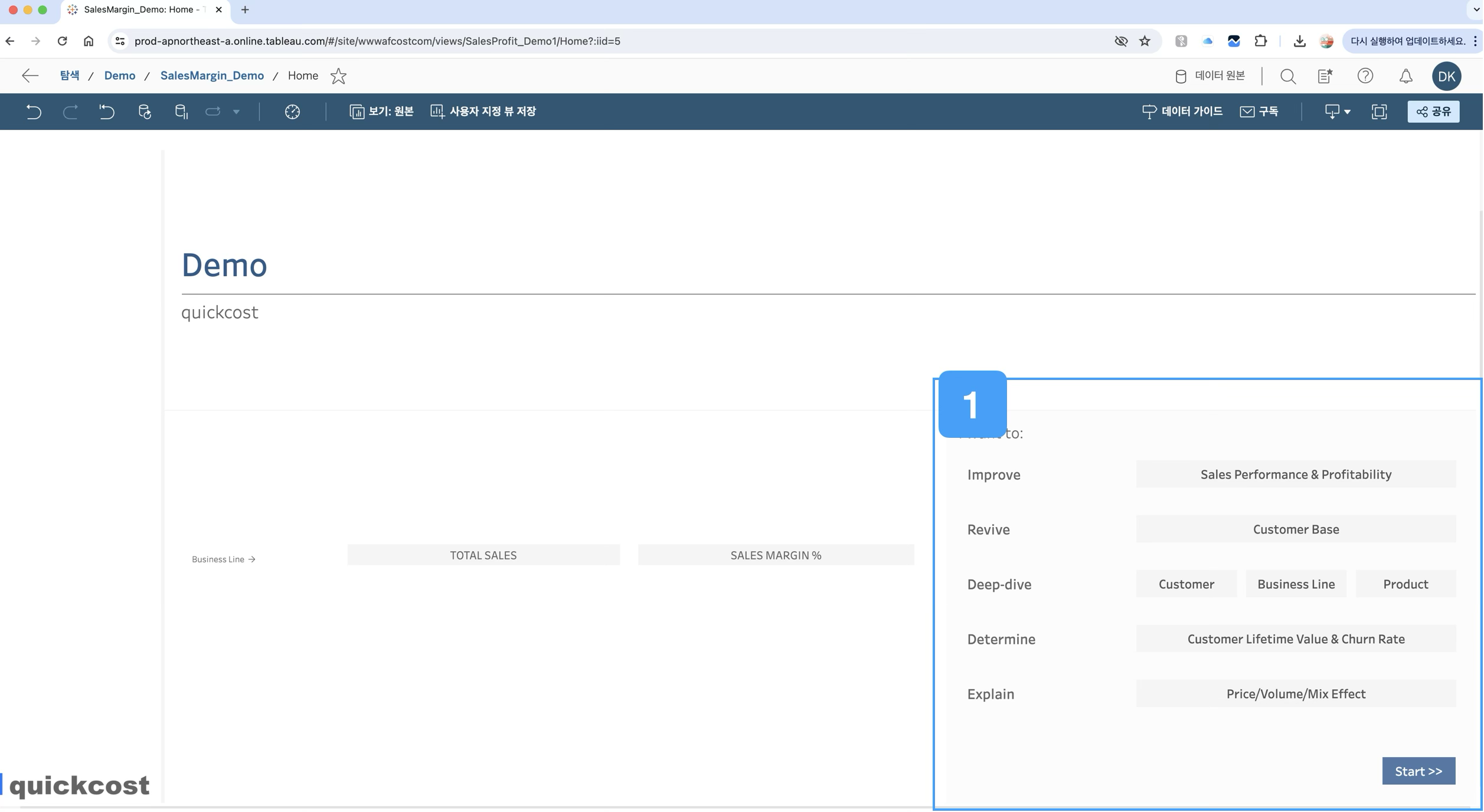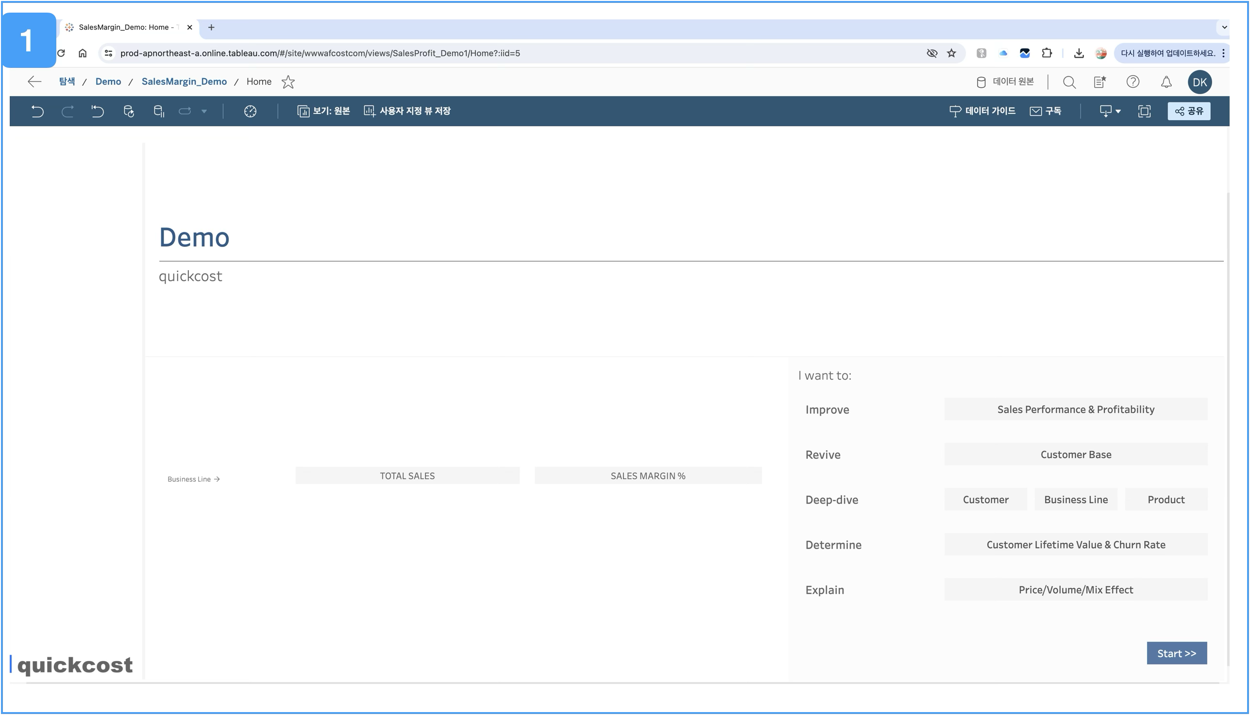 퀵코스트 앱의 시각화 화면에서 웹주소 버튼을 클릭하면 링크주소와 복사하기 버튼이 나타납니다.