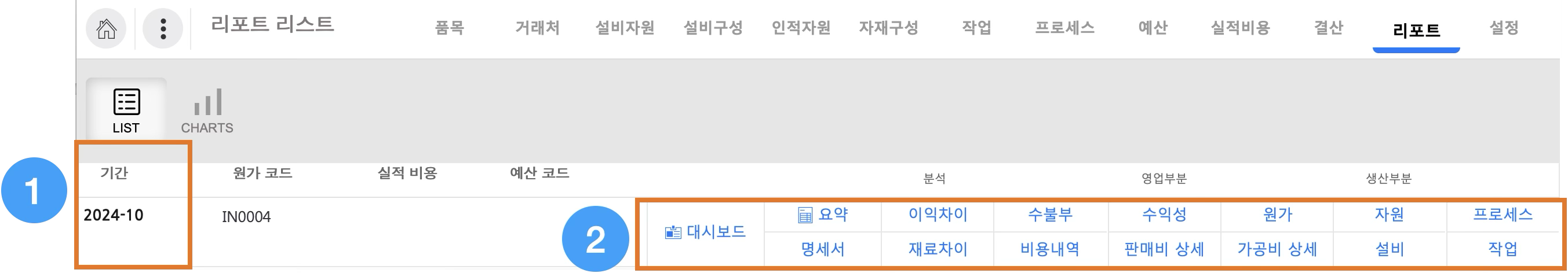기간의 원가변화기간별로 재료비와 가공비가 어떻게 변동했는지 추세를 확인할 수 있습니다.